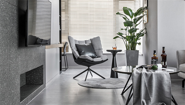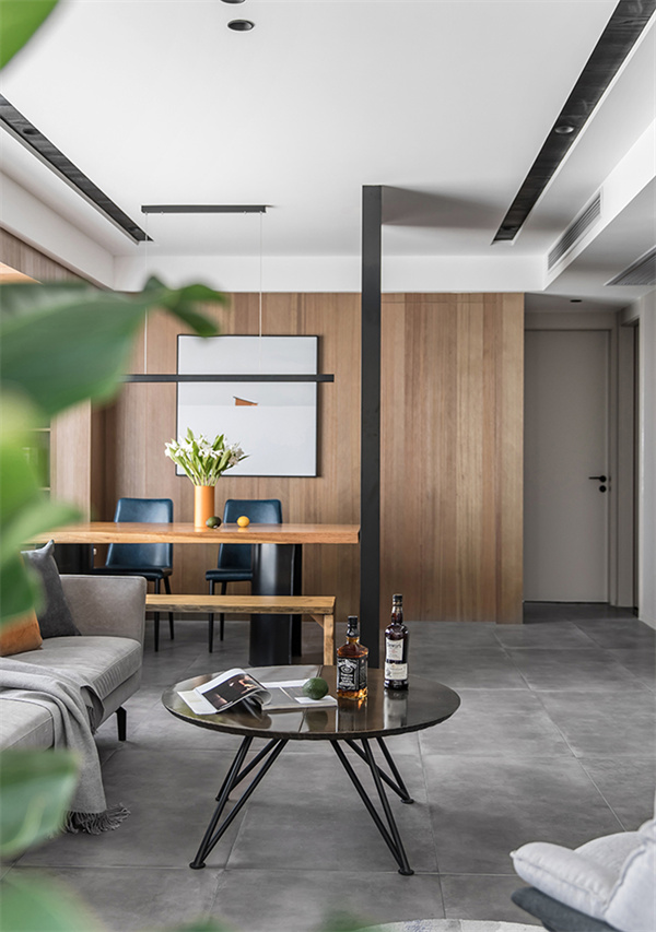 现代简约风格的装修,以通铺的灰色地砖为空间带来稳重和现代感。原木家具则散发着自然的温暖氛围,白色墙面营造通透明亮的空间感,塑造舒适宜人且富有品味的居住空间。