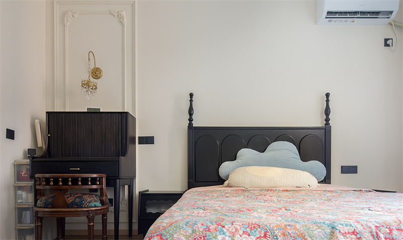 床头一角的实木梳妆台形如小钢琴轻盈灵动,静置角落装点卧室,每一处细节都充满法式的浪漫与优雅。