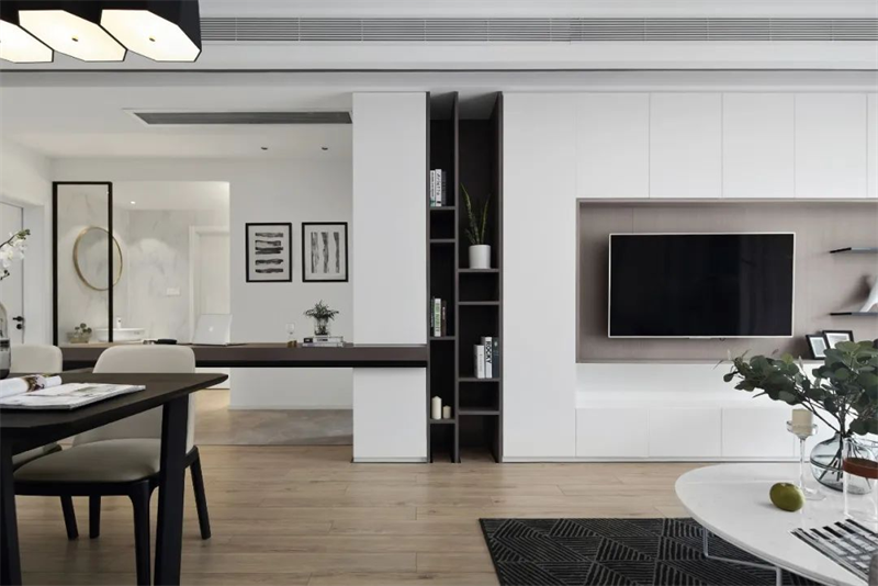 本案选用现代极简风格装修,通过简洁、清新的设计元素,创造了一个舒适、宁静的家居环境,让极简主义的设计原则在整个空间中得到了充分体现。